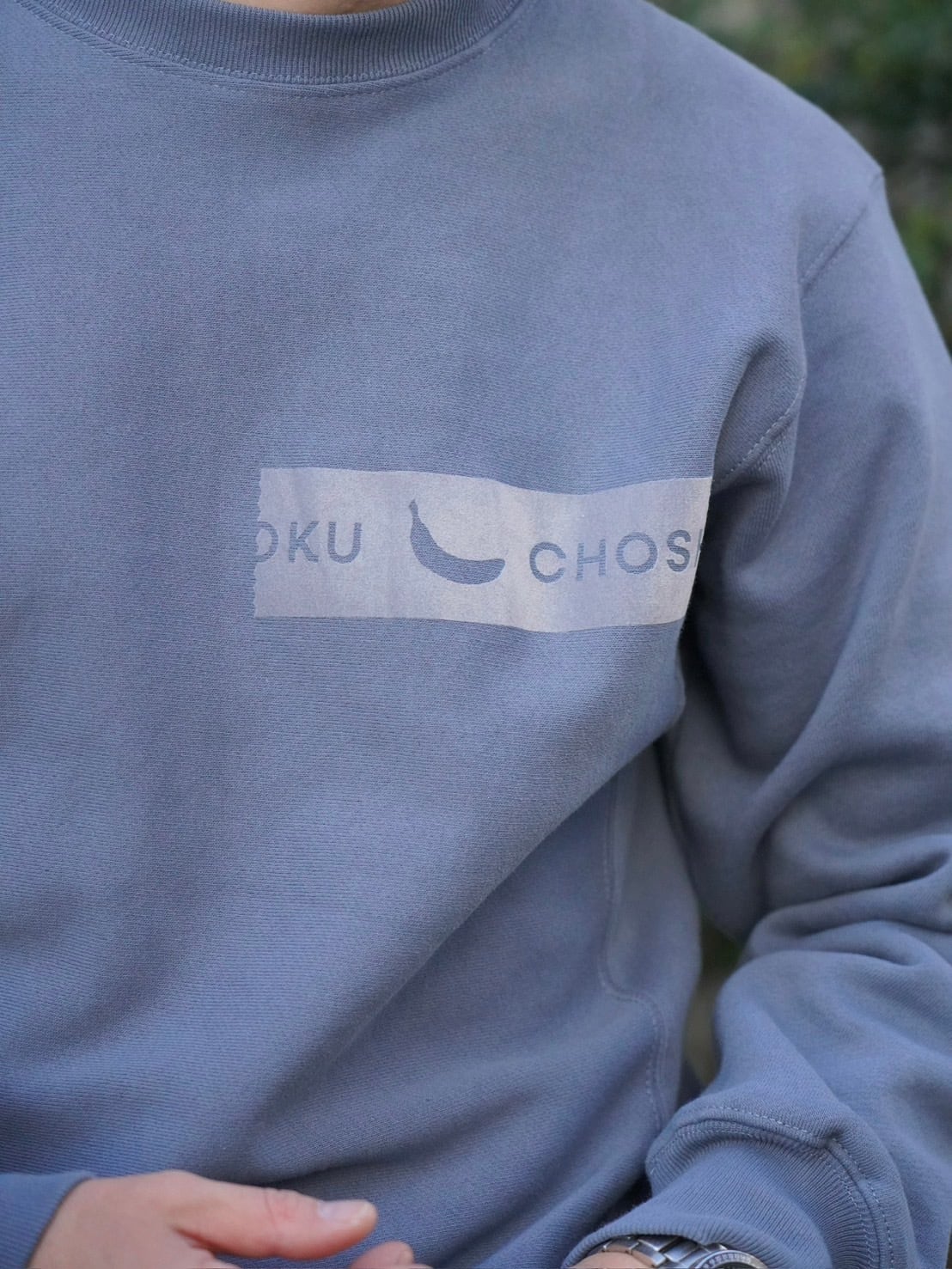 生地感は型崩れしにくい、ブルーバナナのスウェットの中だと厚手タイプです。