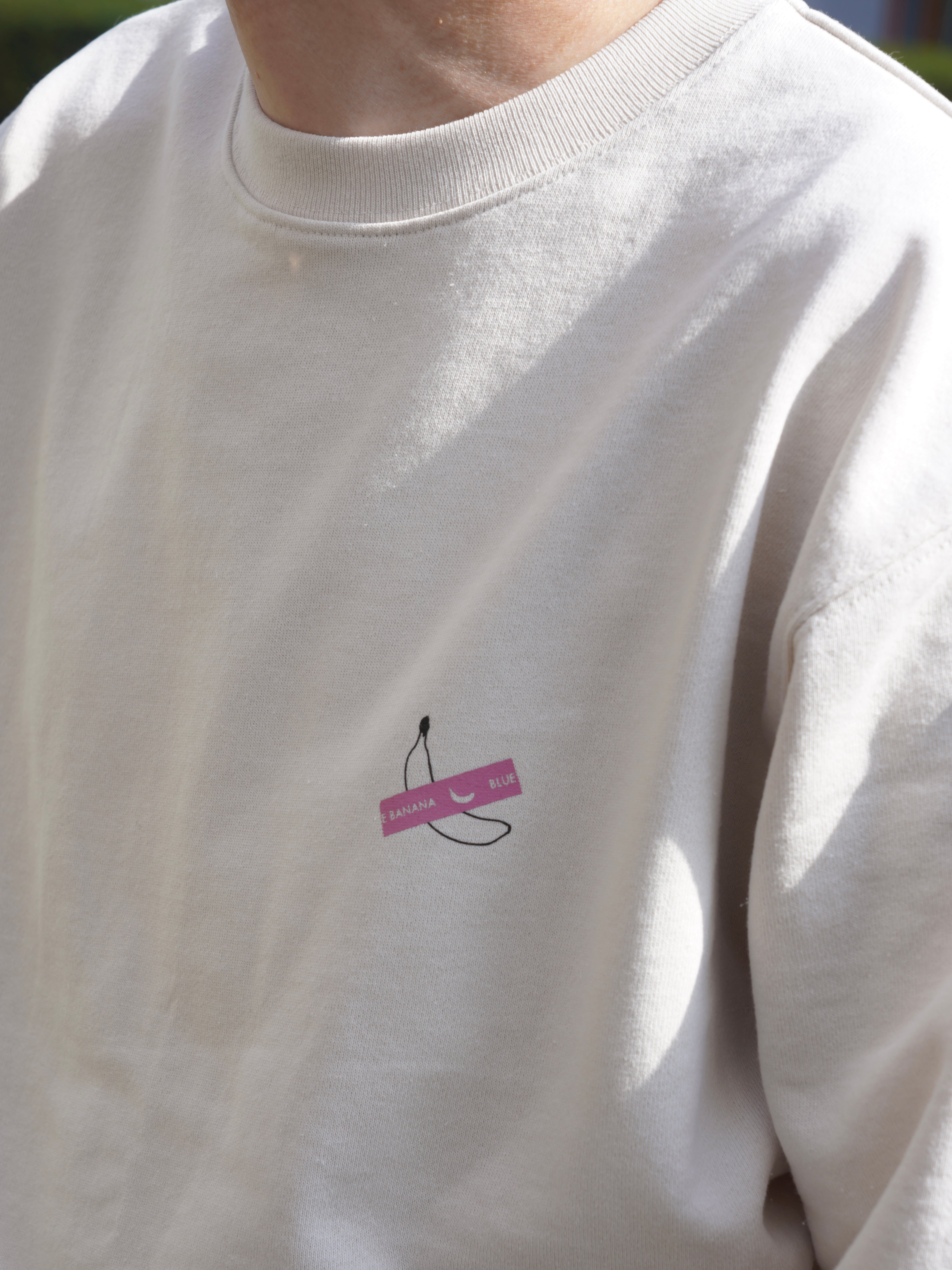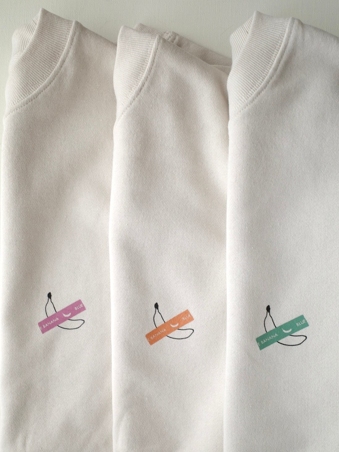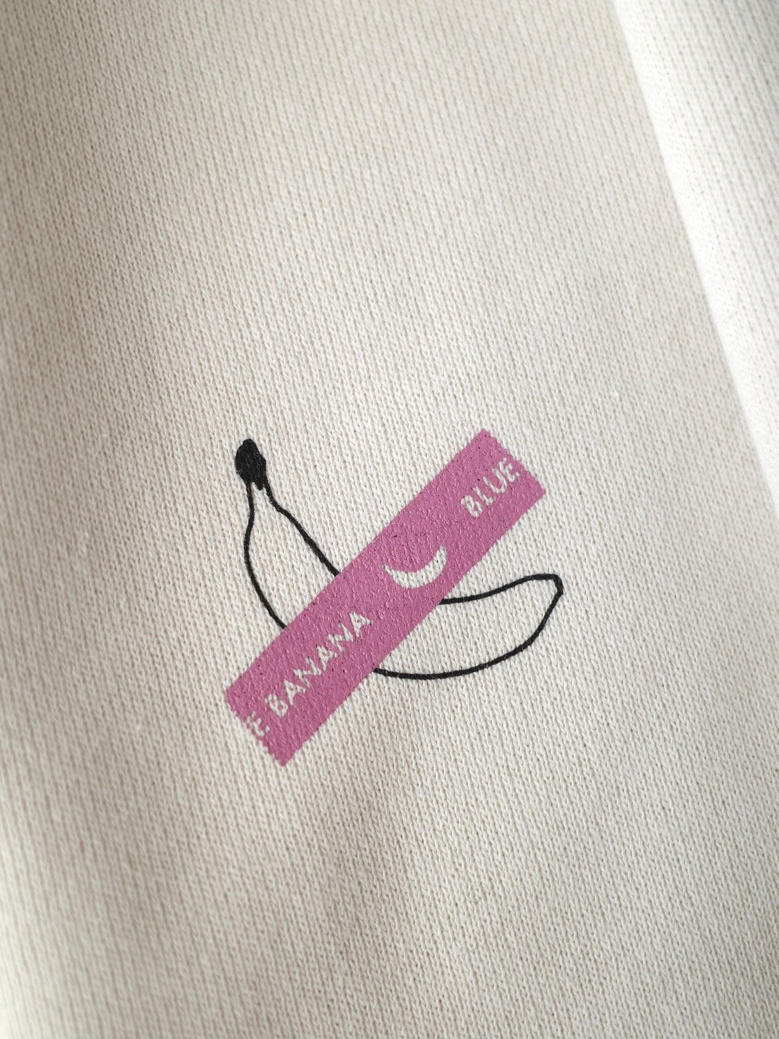 ブルーバナナスタンドの店前の看板と同じ、バナナをテープで貼ったデザイン。