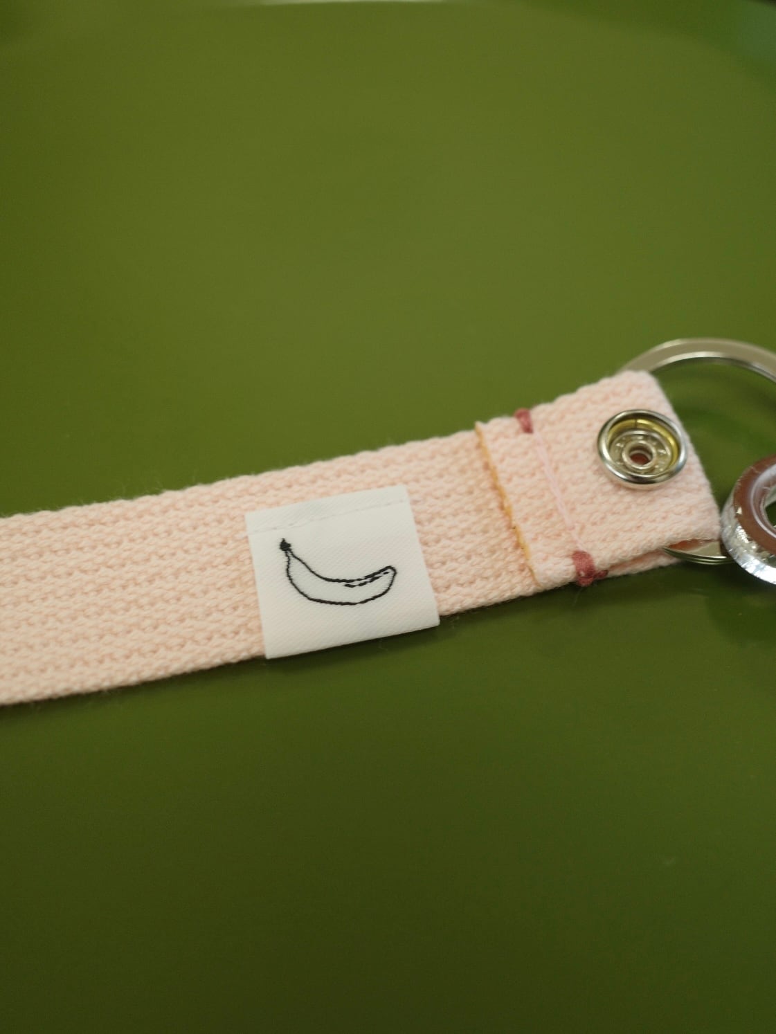 先端には、ブルーバナナのBと後ろには隠れバナナの織りネームをつけています。