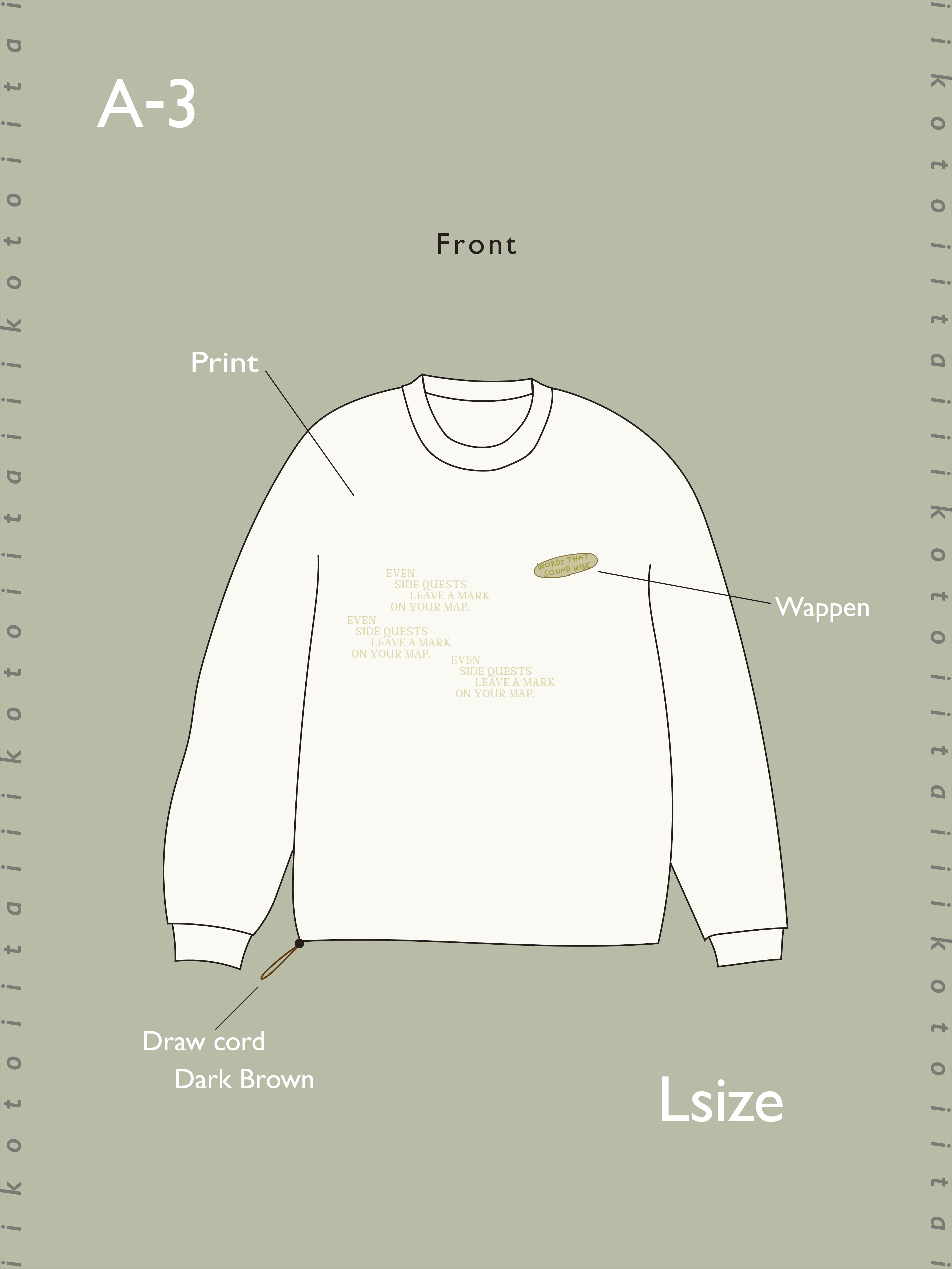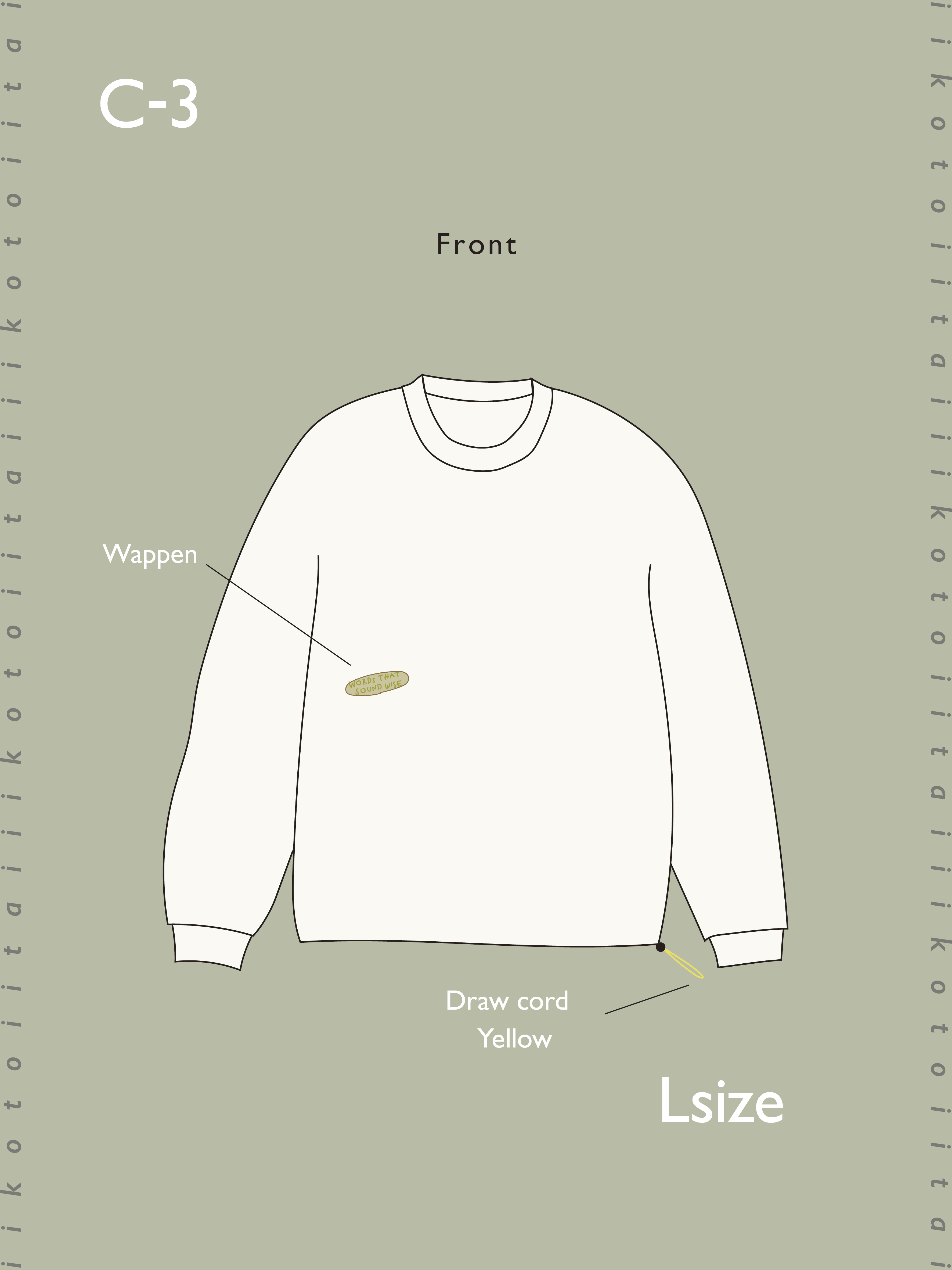 今回のバナ兄さんのいいことワードたち、おまじないみたいだなと思ったので唱えているようなイメージで繰り返してるデザインにしてみました。
