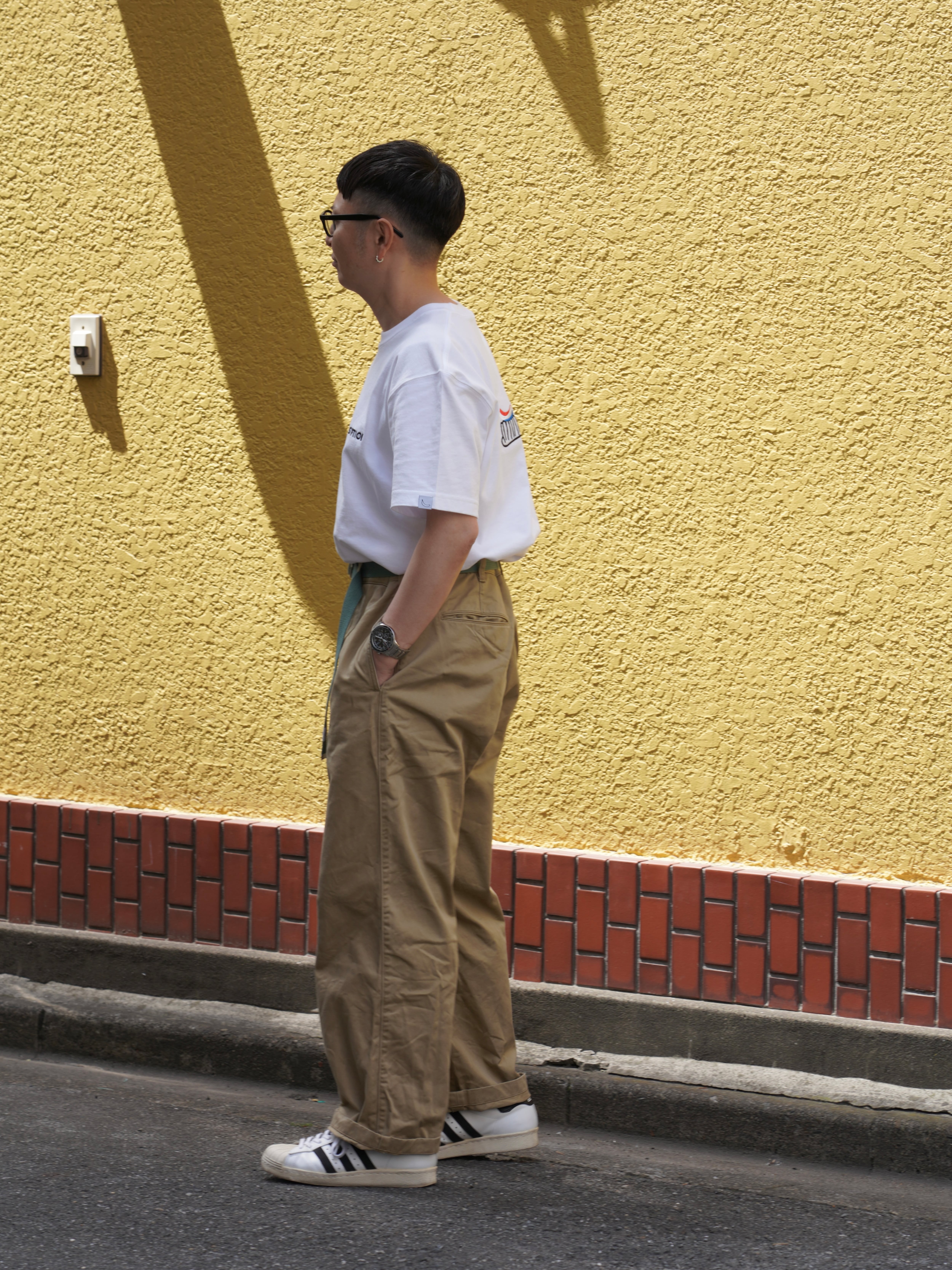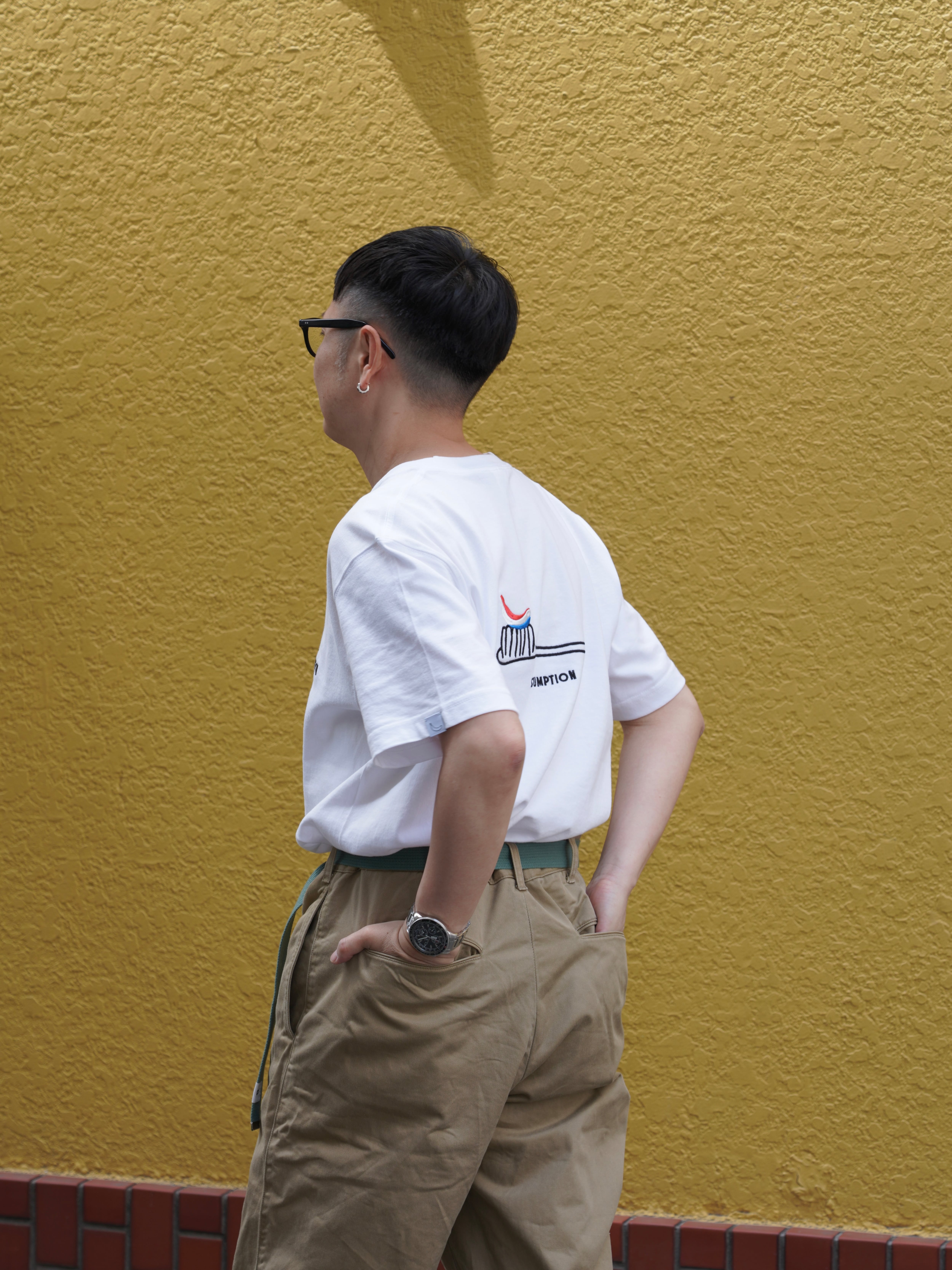 きちんと感のある雰囲気とリラックスシルエットに歯ブラシのデザイン。