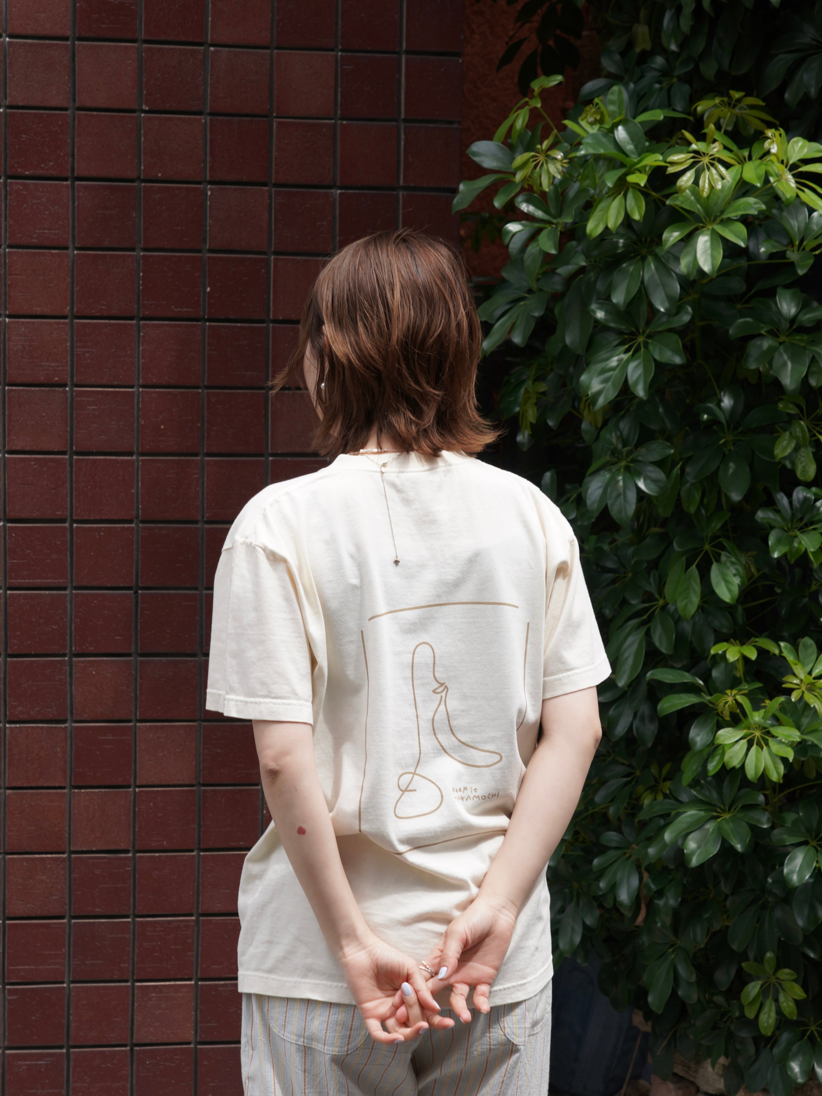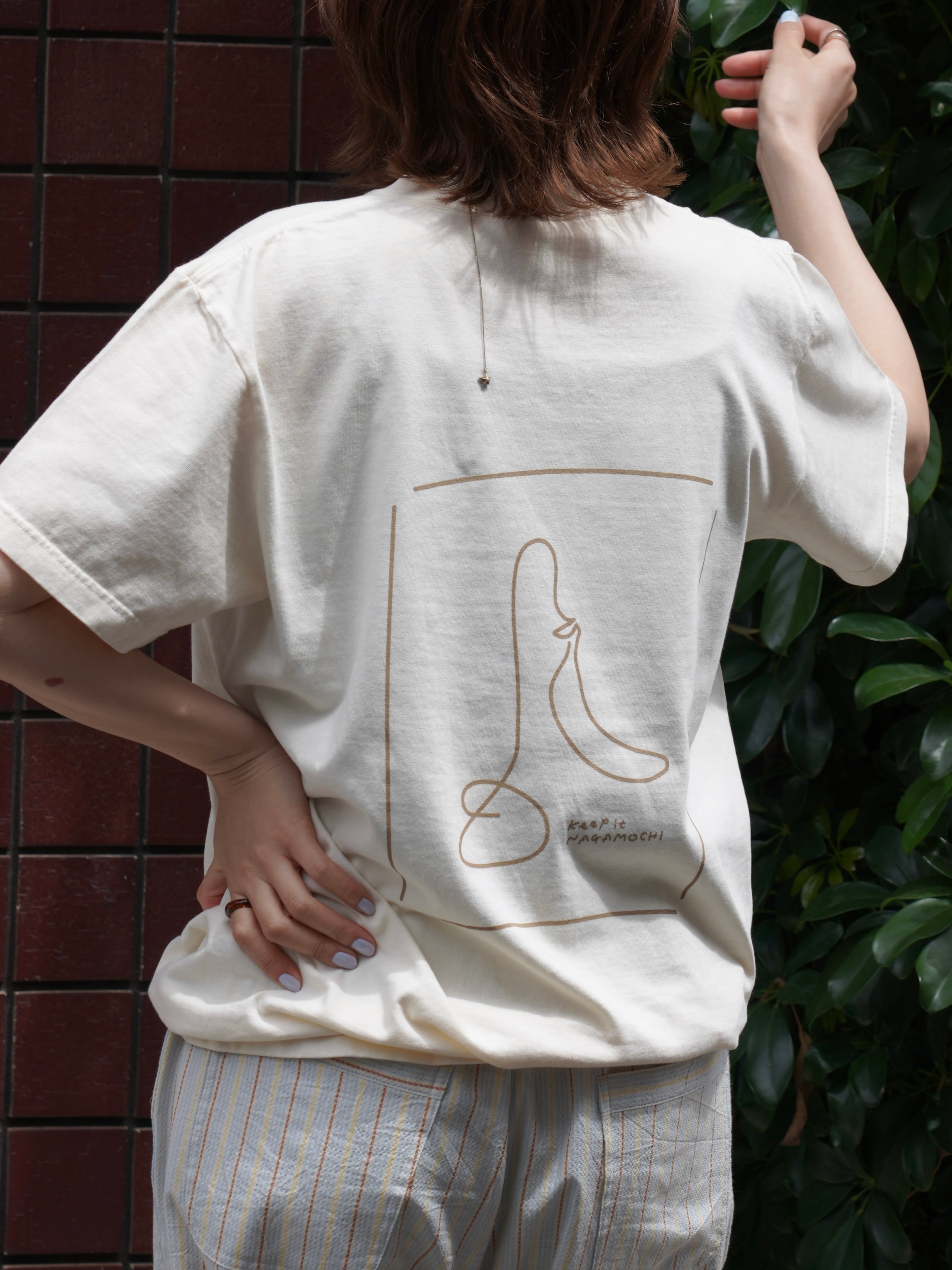 バックプリントでゆるっと着るのにぴったりな雰囲気なのであえてワンサイズあげて着るのも良さそうです◎写真でもお分かりいただけるようにMサイズとLサイズで袖丈の長さのちがいが大きくあるなと思いました。Mサイズでも短くは感じないです。Lサイズだとちょうどひじくらいです。