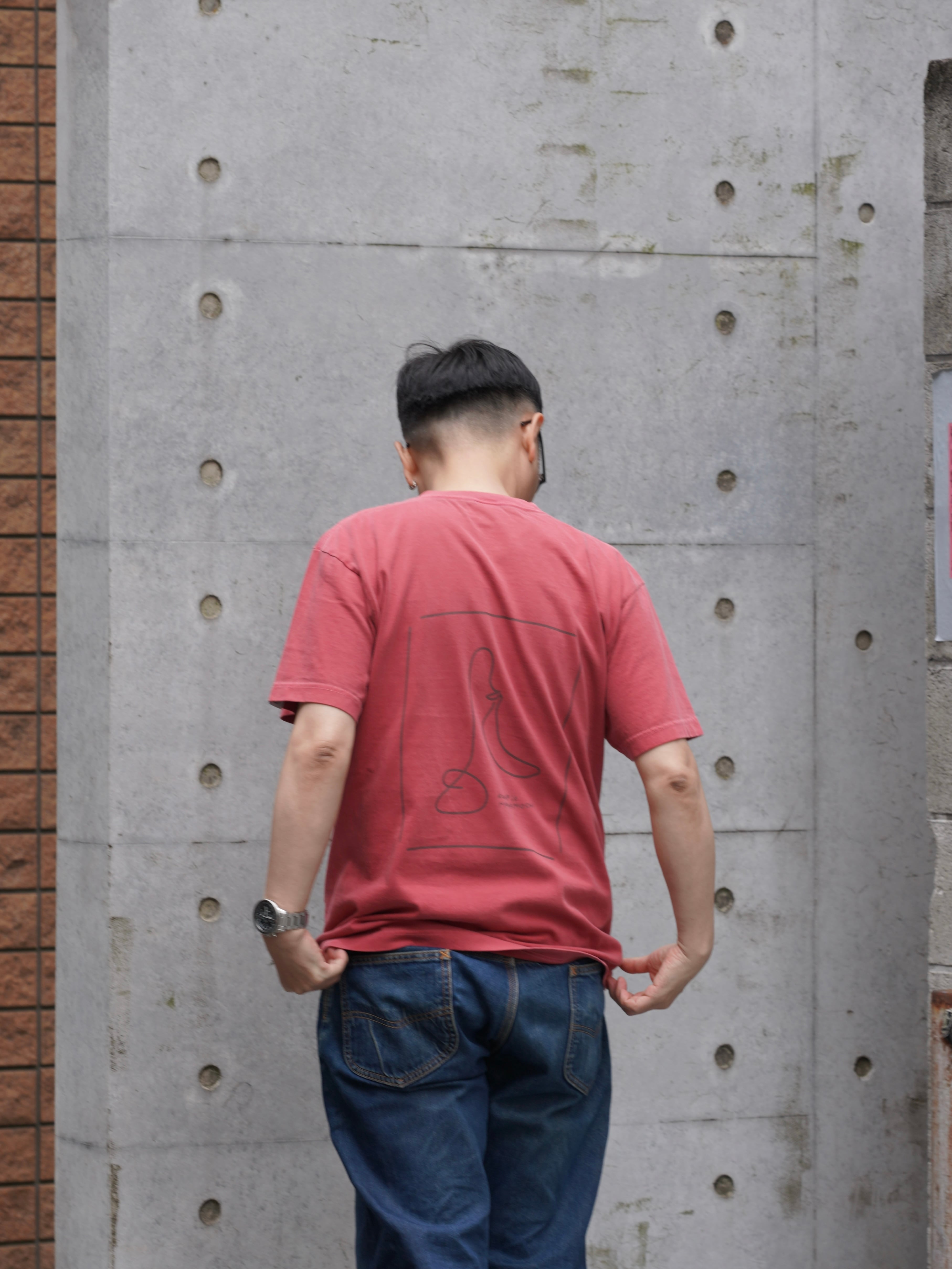 バックプリントでゆるっと着るのにぴったりな雰囲気なのであえてワンサイズあげて着るのも良さそうです◎写真でもお分かりいただけるようにMサイズとLサイズで袖丈の長さのちがいが大きくあるなと思いました。Mサイズでも短くは感じないです。Lサイズだとちょうどひじくらいです。