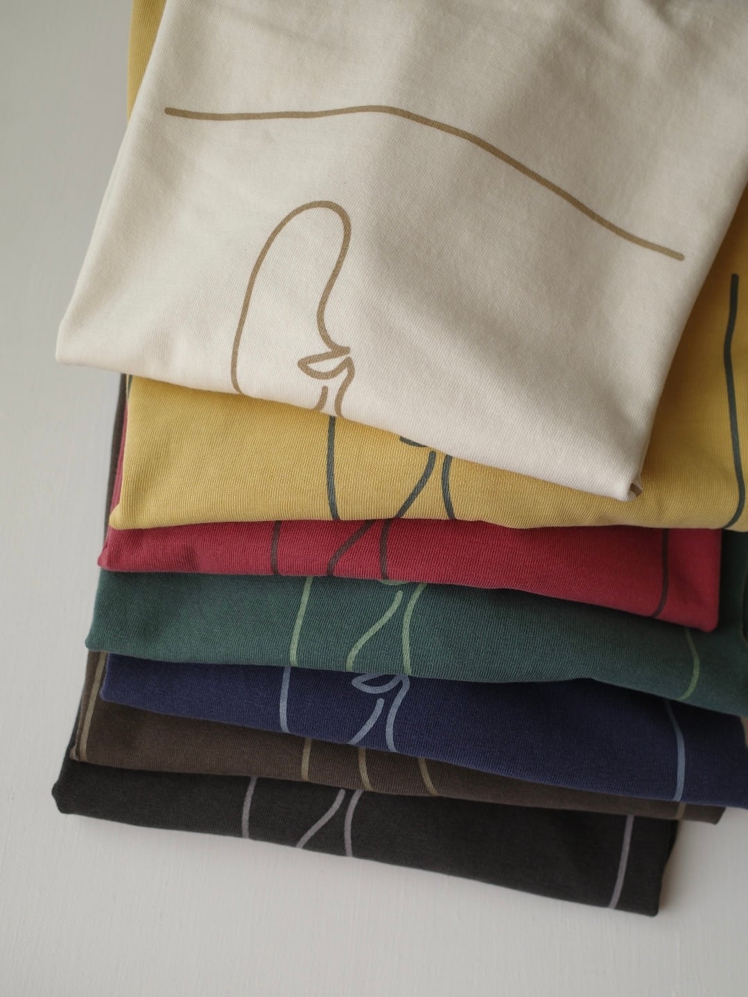 ナガモチイラストのプリントカラーはゆるっとしたなつかしい雰囲気をイメージしてそれぞれ調色しました!