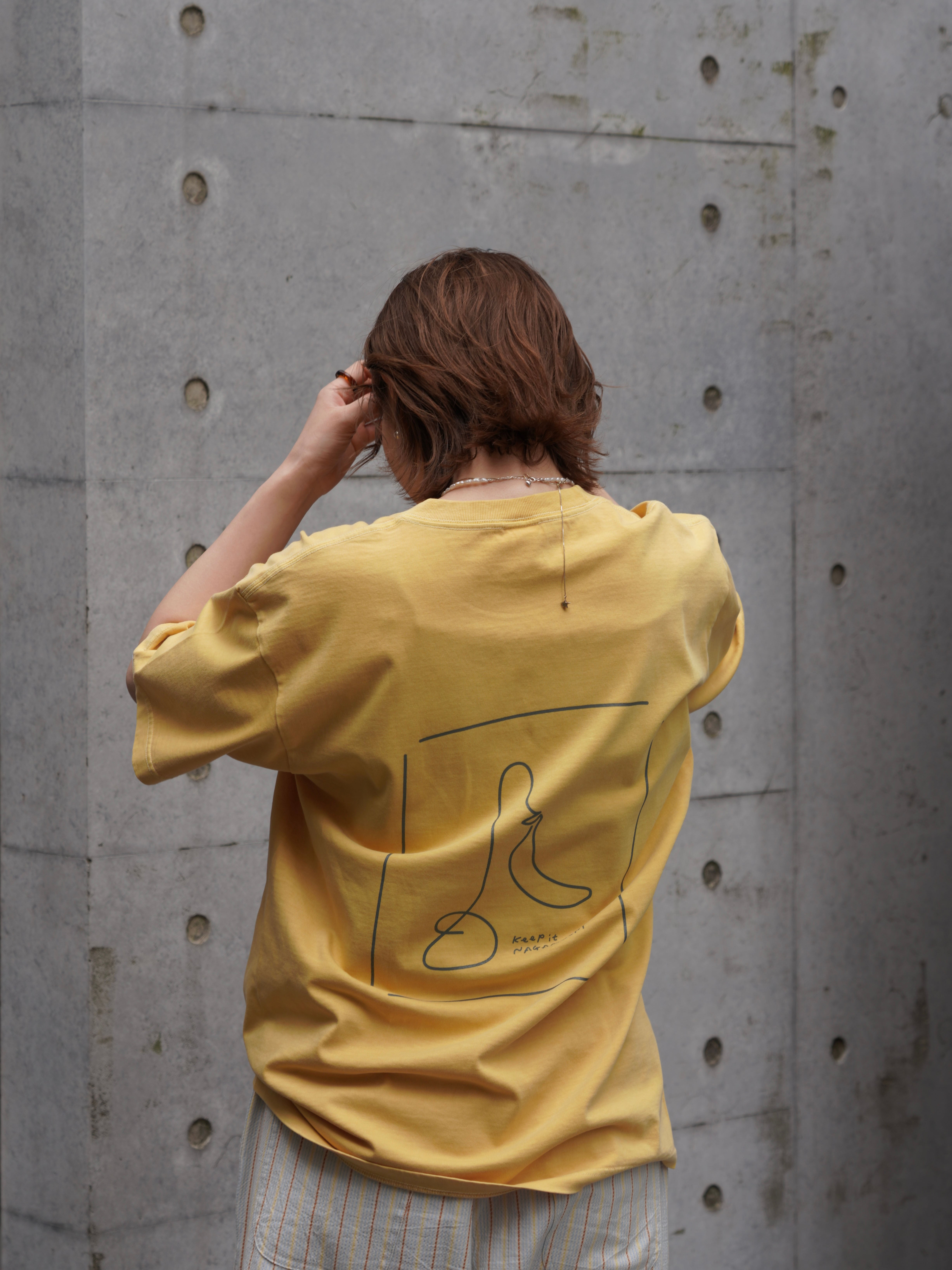 バックプリントでゆるっと着るのにぴったりな雰囲気なのであえてワンサイズあげて着るのも良さそうです◎写真でもお分かりいただけるようにMサイズとLサイズで袖丈の長さのちがいが大きくあるなと思いました。Mサイズでも短くは感じないです。Lサイズだとちょうどひじくらいです。