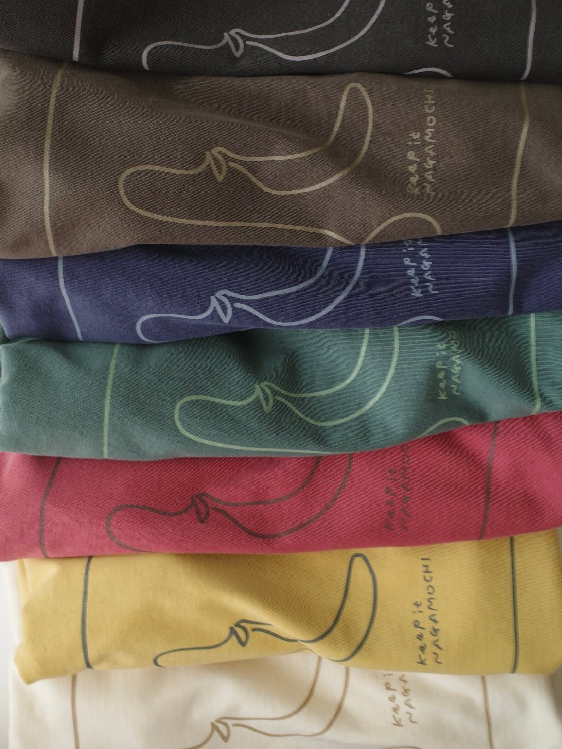 ナガモチイラストのプリントカラーはゆるっとしたなつかしい雰囲気をイメージしてそれぞれ調色しました!