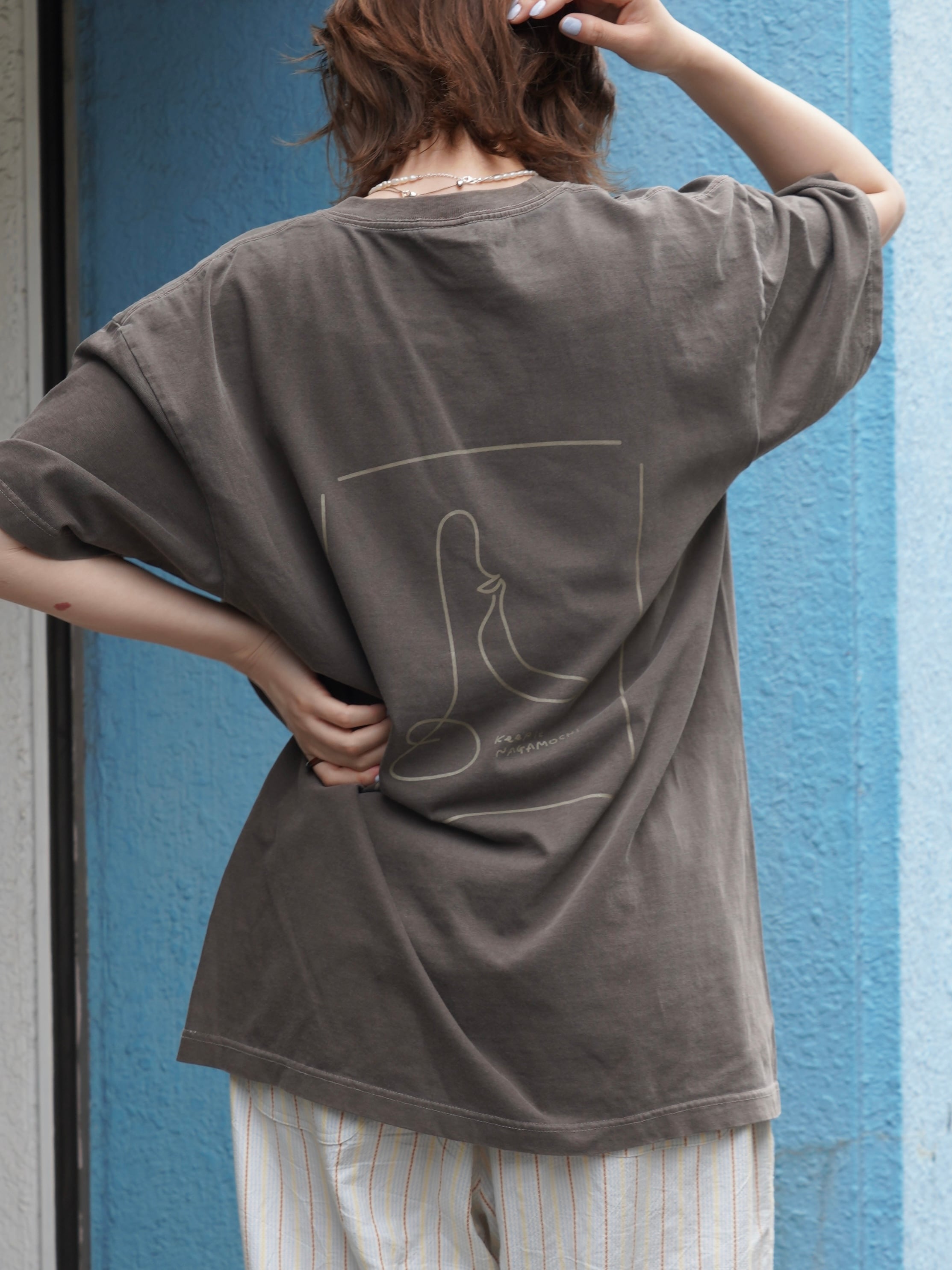バックプリントでゆるっと着るのにぴったりな雰囲気なのであえてワンサイズあげて着るのも良さそうです◎写真でもお分かりいただけるようにMサイズとLサイズで袖丈の長さのちがいが大きくあるなと思いました。Mサイズでも短くは感じないです。Lサイズだとちょうどひじくらいです。